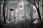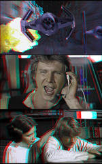 Sometimes, channel manipulations can ease the problems of color anaglyphs. Demonstrated below are various channel swaps. Other techniques, such as adjusting saturation, constrast and so forth may help. Unfortunately, all such efforts affect the color rendition. In the worst cases, the monochromatic anaglyph may be the best solution.