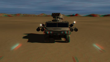 The obvious camera target for good framing and convenient tracking may not be where you want convergence. For example, in the Humvee demo on the LW CD, the camera target is at the center of the vehicle. Now, that may not be a bad compromise for an anaglyph, as it will minimize fringes on the main subject and in some ways make for easier viewing, but to avoid breaking the stereo window I would prefer zero screen parallax in this case to be somewhat in front of the Hummer (especially for a better display method, such as polarized projection). This kind of floating target can be tough to set. Any camera target will cause toe-in--don't use this feature if you want parallel lenses. It is not necessarily a bad thing to animate your camera without targets--setting the camera move independently can result in more interesting, less mechanical, camera moves.