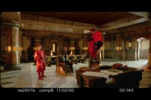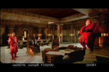 Sure, I have to do my usual magic with spline mattes - to eliminate the crane. But on looking at the shot my boss (Tony Alderson) discovered that Feyd was "slipping" during the shot. (Feyd had to be digitally "removed" and then placed back in the shot). I mean, in film reality he's supposed to be just standing there listening to his uncle. Not strangely vibrating across the floor. weird!