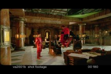 I made the ceiling (if I recall correctly) by using some sort of texture and saving an image which I then composited in the hole of the ceiling. This was defined by a spline matte which has to change over the duration of the shot. (Remember, the camera is moving and therefore, so is the angle of the ceiling). Now, the tricky part is matching the "grain" of the wood as the perspective of the ceiling changes. I basically did this by eye. I picked out a few "landmarks" in the edges of the real ceiling and made sure the fake image always matched up. |